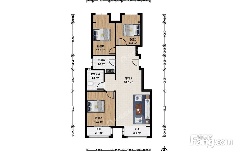 3室1厅1卫