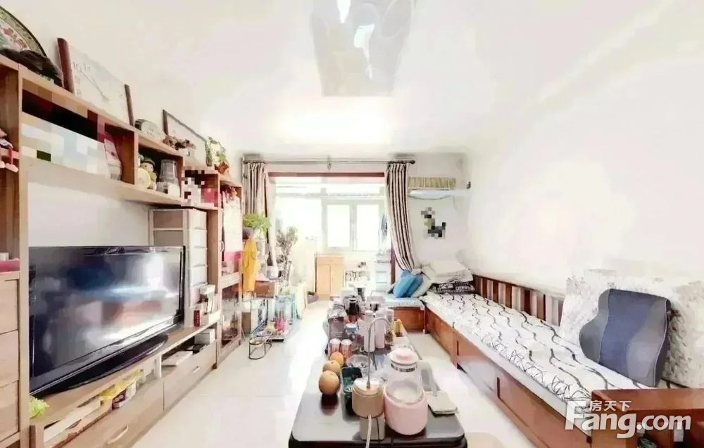 房子是1993年建成的,南北通透两居室,一进门是一个客厅,南北各一个卧室,南向卧室带阳台,独立厨房,独立卫生间。