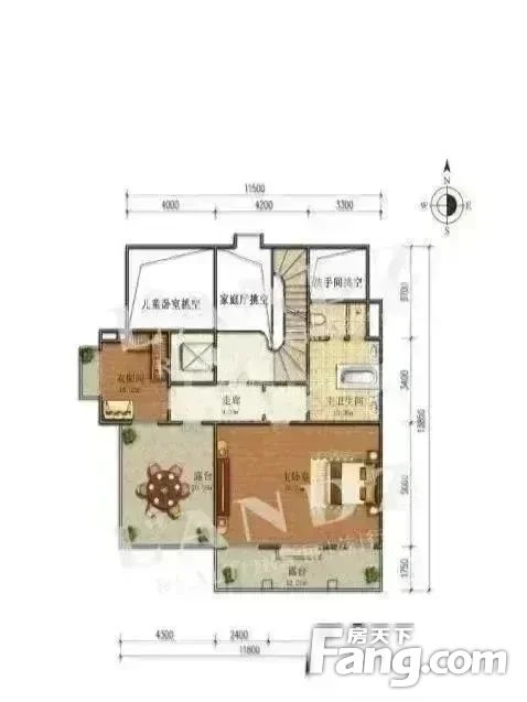 ③三层是主人空间,主卧套房+双衣帽间+。