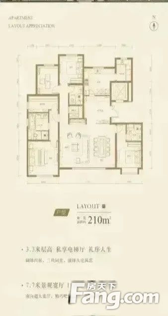 三环豪华装修大平层)210平米1800万 7.2米宽厅设计!