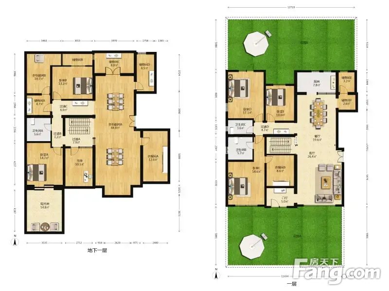 联排:前二后三设计,地上三层地下2层,主力户型建面277㎡-330㎡为主。实用面积550㎡-600㎡。花园60㎡-100㎡。(个别联排370-420平)