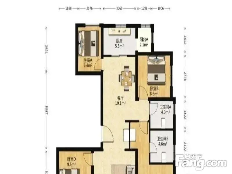 ②户型方正,分布合理,使用率高,没有浪费面积。