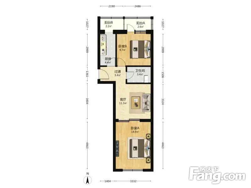 青塔东里 2室1厅 64.71平