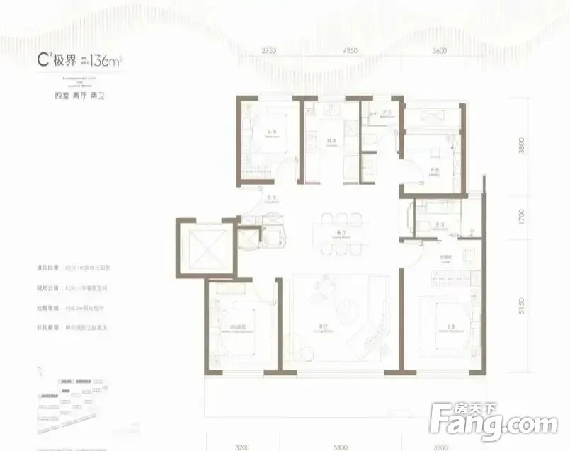 房屋拥有相对宽松的尺寸,布局通透,动静分离,设计豪华。