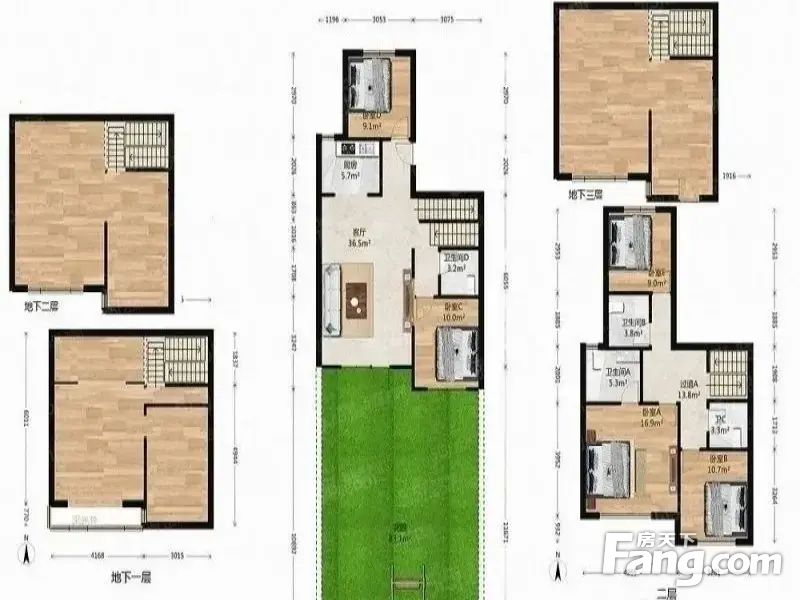 世茂维拉联排别墅+地上两层地下三层别墅.装修花了120万