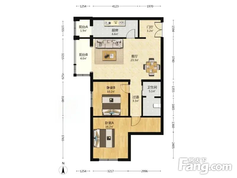 3、房屋详情:采光好,视野无遮挡,南北通透、户型方正,阳台朝向花园。