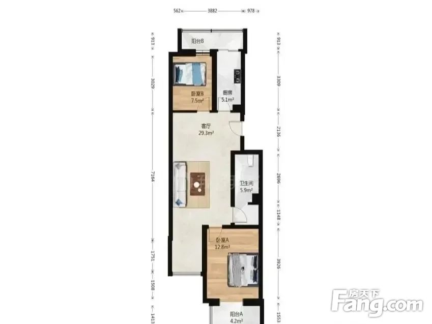 广阳城地铁站西侧500米,南北两居室