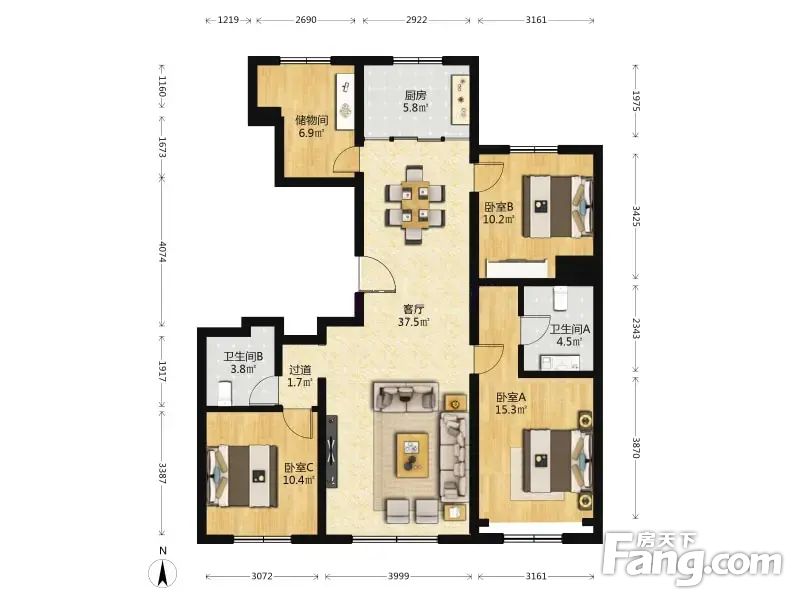 亦庄金茂府 3室1厅 131.02平