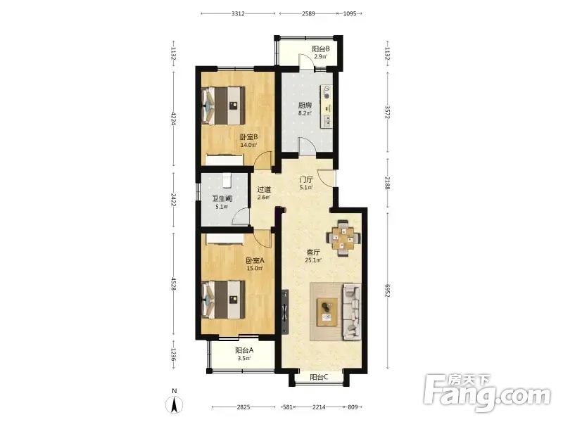 3.户型正气:南北的户型、格局周正合理、无浪费面积。