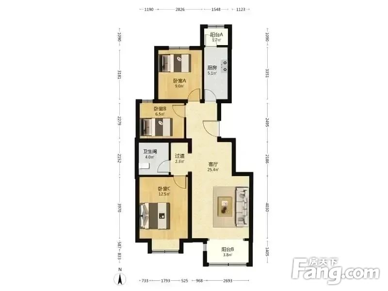 2.朝向:南北,全明户型,采光好,明厨,小区户此户型在售不多。