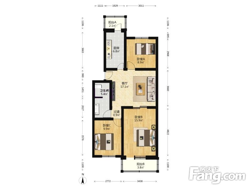 五环里4号线西红门站 荟聚东侧福园 3室1厅 95.01平