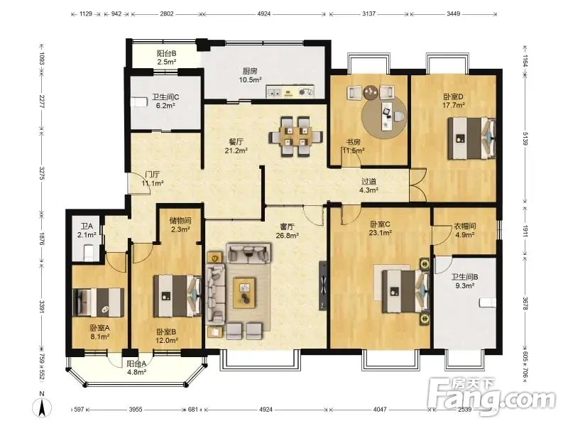 房屋拥有相对宽松的尺寸,布局通透,动静分离,设计豪华