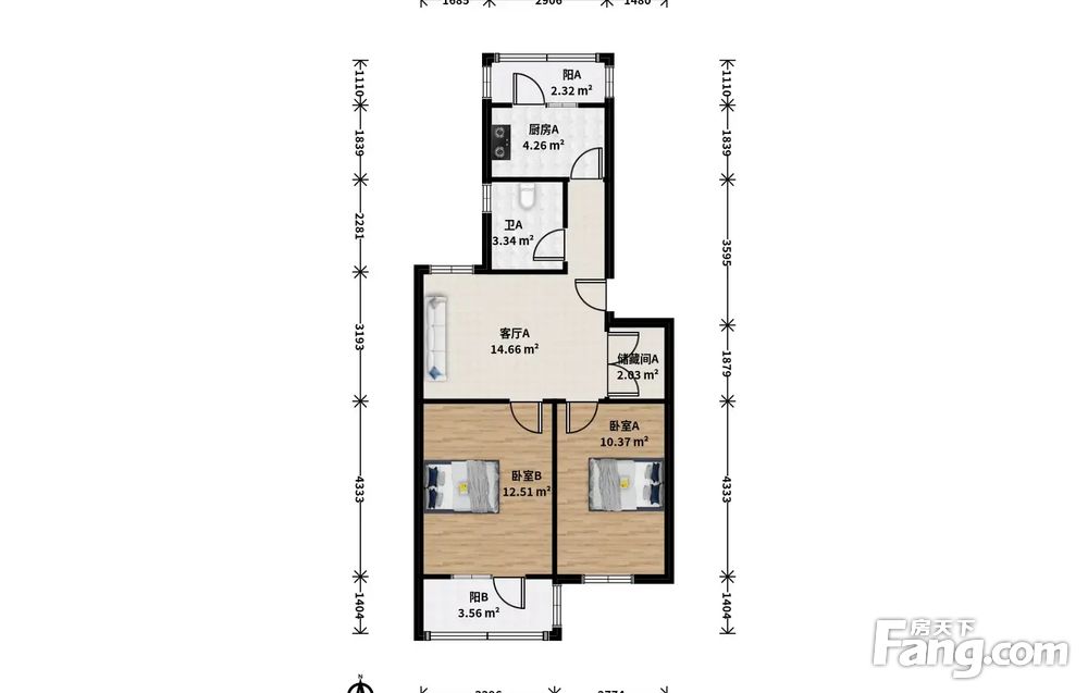 自营房源:南北通透两居室 卧室全南 楼层适中 采光良好
