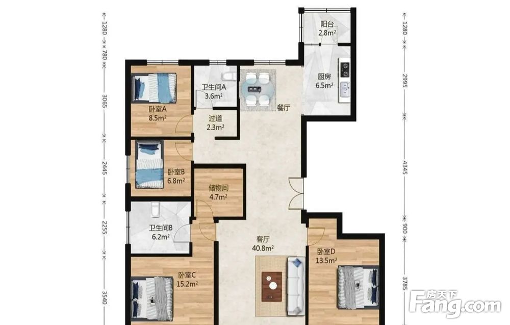 房屋拥有相对宽松的尺寸,布局通透,动静分离,设计豪华