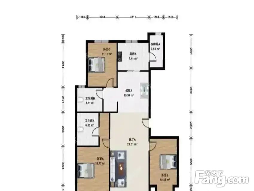 1:138.84平米户型,整个园区只有5套!万年广阳郡九号开售以来出的套这种户型的房子!户型采光好!大厅双卧朝南,卫生间带窗户