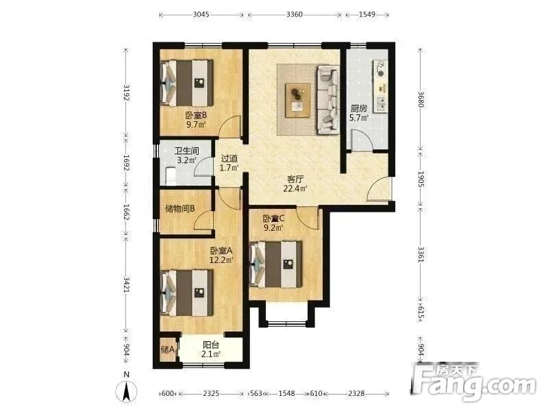 3室1厅2卫