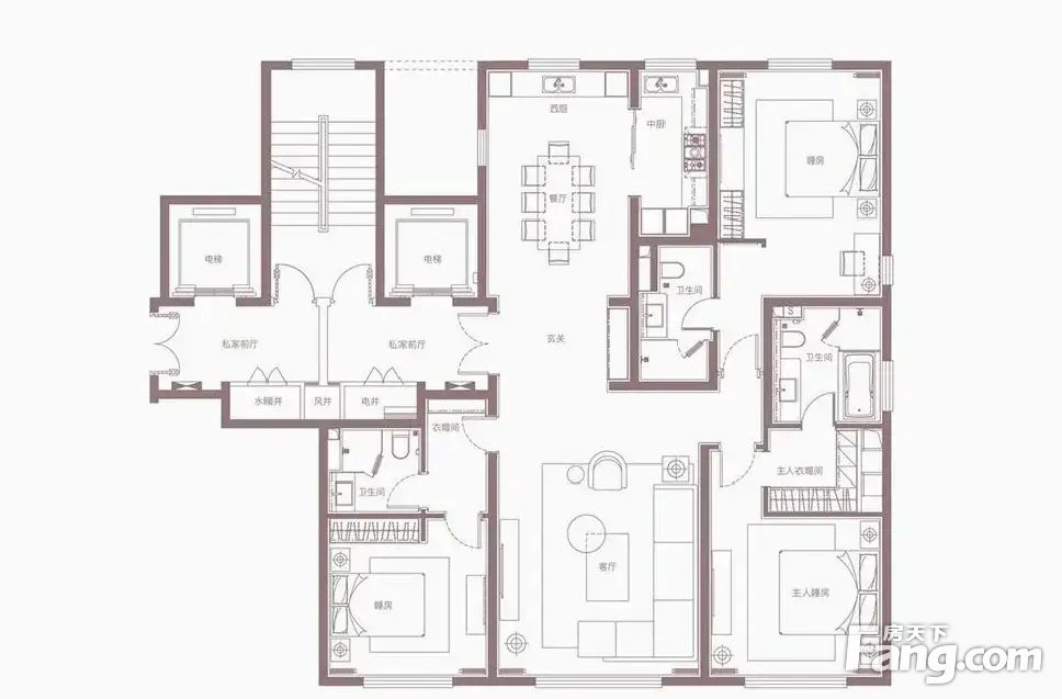 房屋拥有相对宽松的尺寸,布局通透,动静分离,设计豪华