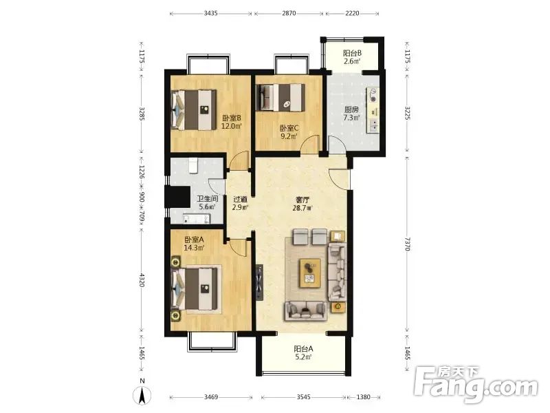3.户型正气:南北的户型、格局周正合理、无浪费面积。