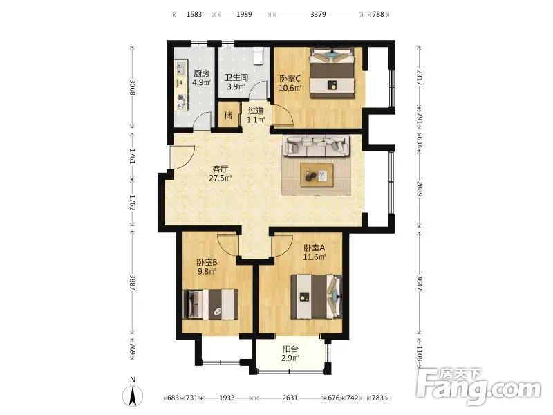 金域缇香 3室1厅 105.64平