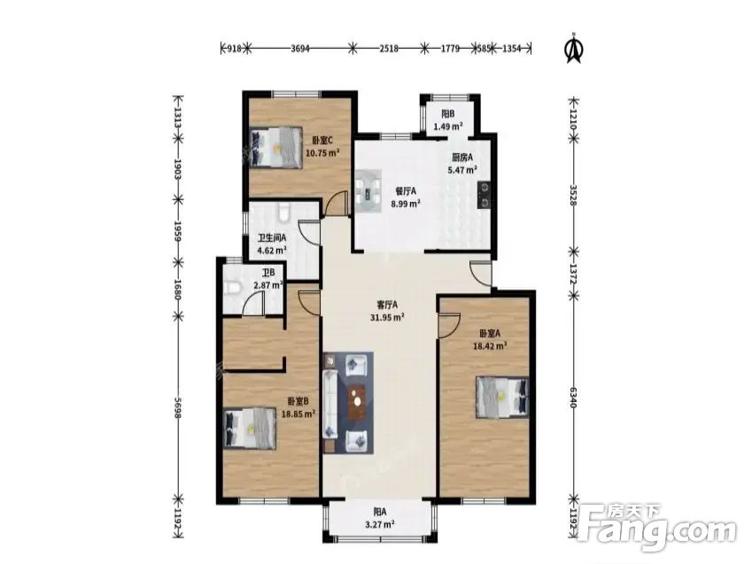三阳开泰户型 明厨双明卫 精装修 高楼层采光视野好 方正阳台