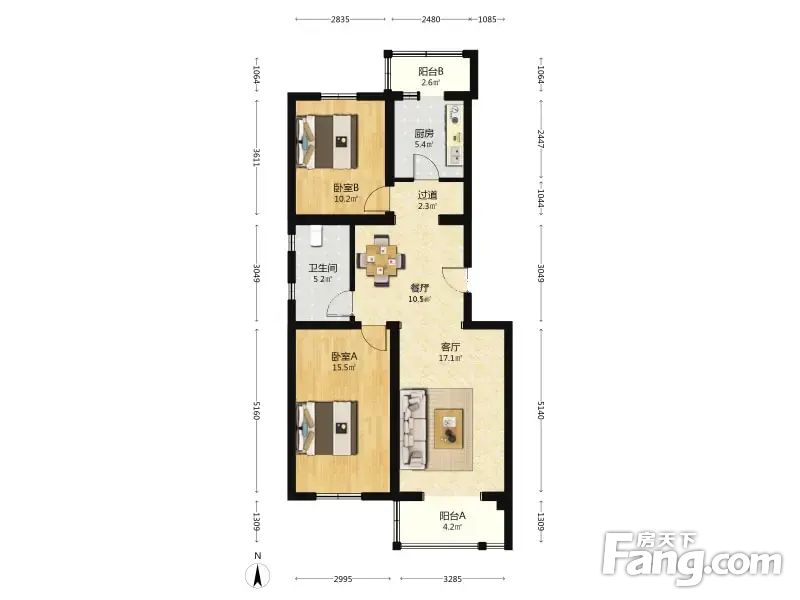 2.朝向:南北,房间采光是没任何问题的。