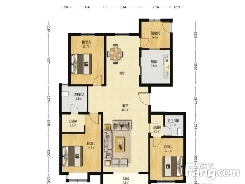 ②户型方正,分布合理,使用率高,没有很长过道浪费面积,这也是您要考虑的一点。