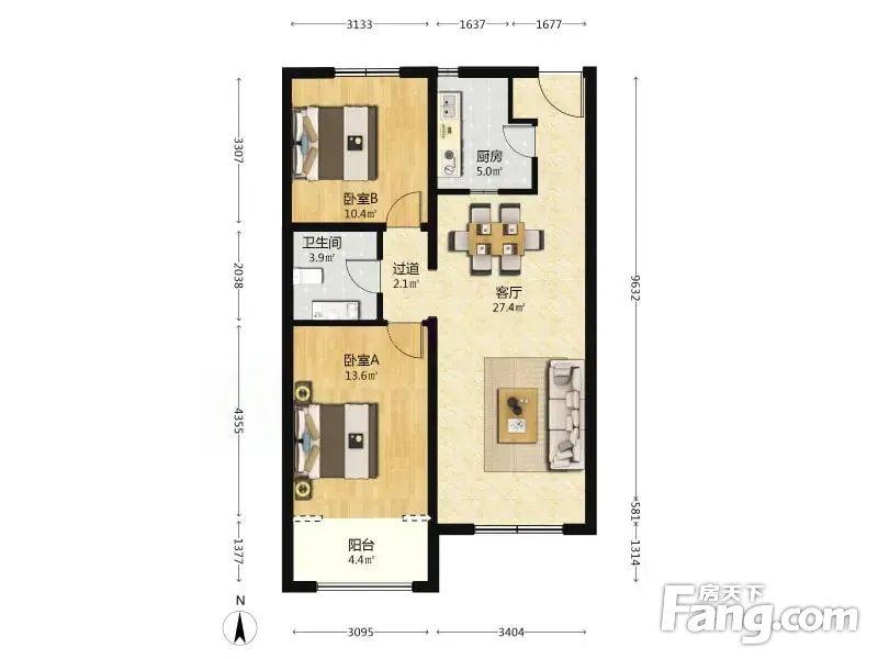 红木林北区 2室1厅 77.15平