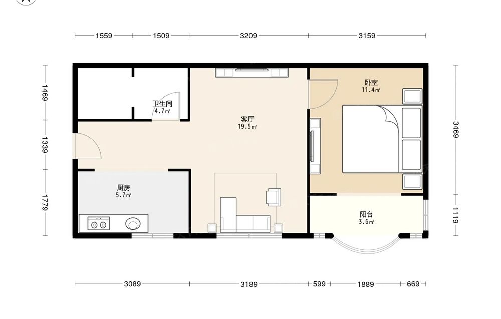 地铁古城家园 1室1厅 南