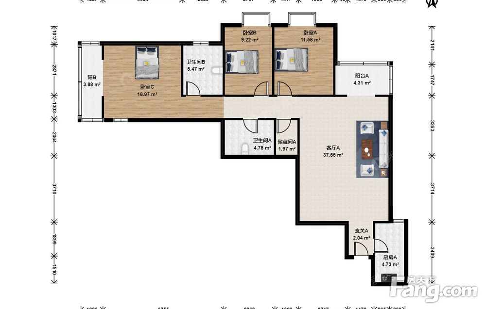 3室1厅2卫