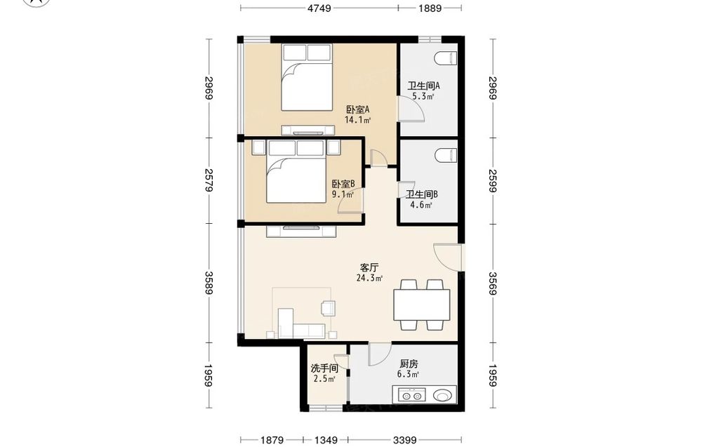 2室1厅2卫