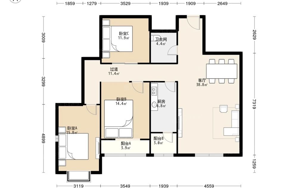 3室1厅2卫