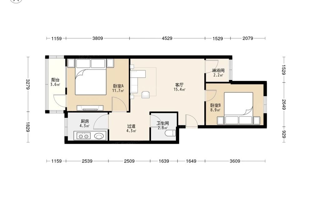 房屋结构 2室 1厅 2卫