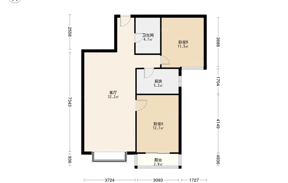 房屋结构 2室 2厅 1卫