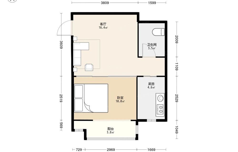 房屋结构 1室 0厅 1卫