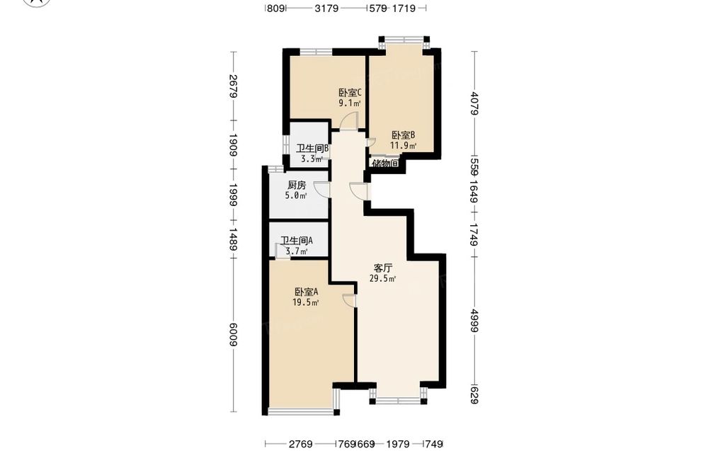房屋结构 3室 1厅 2卫