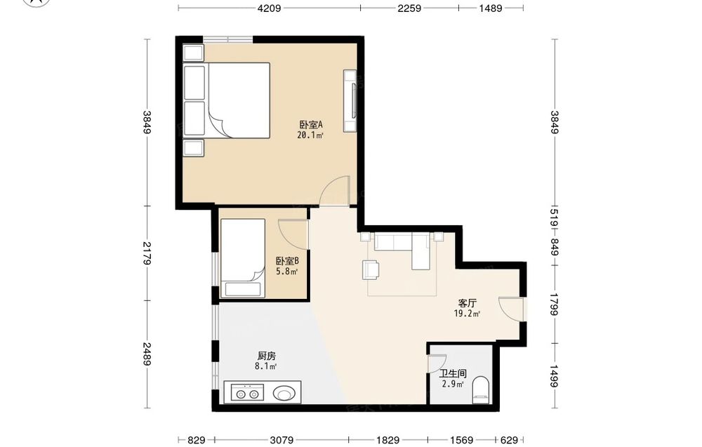 远洋山水 2室1厅 西北