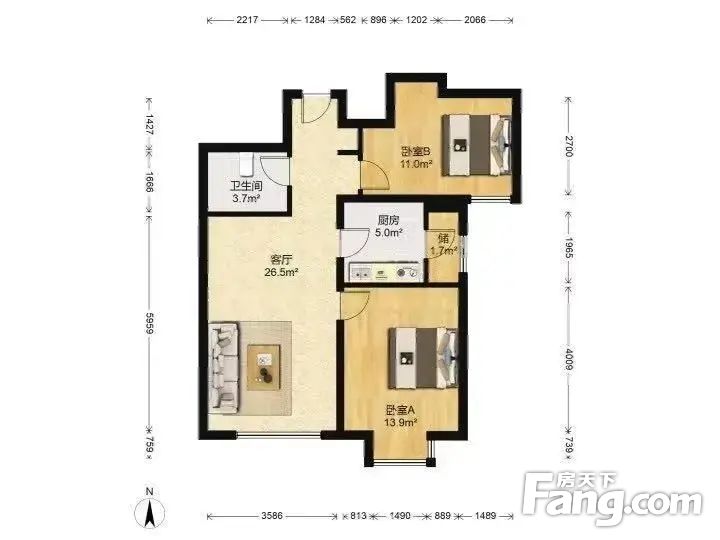 豆各庄·富力又一城C区·2室·1厅