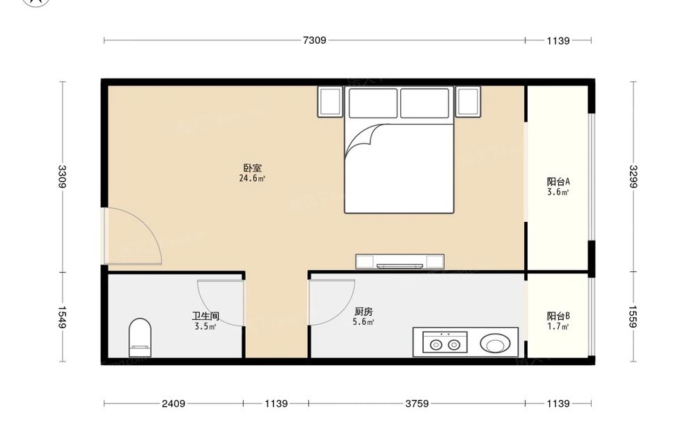 房屋结构 1室 1厅 1卫