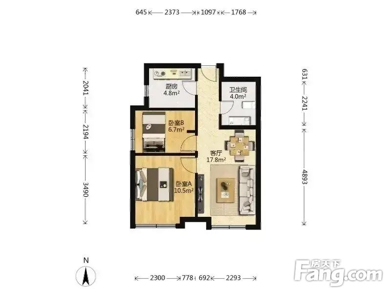 丰台红山郡新上2室1厅 户型方正 无浪费