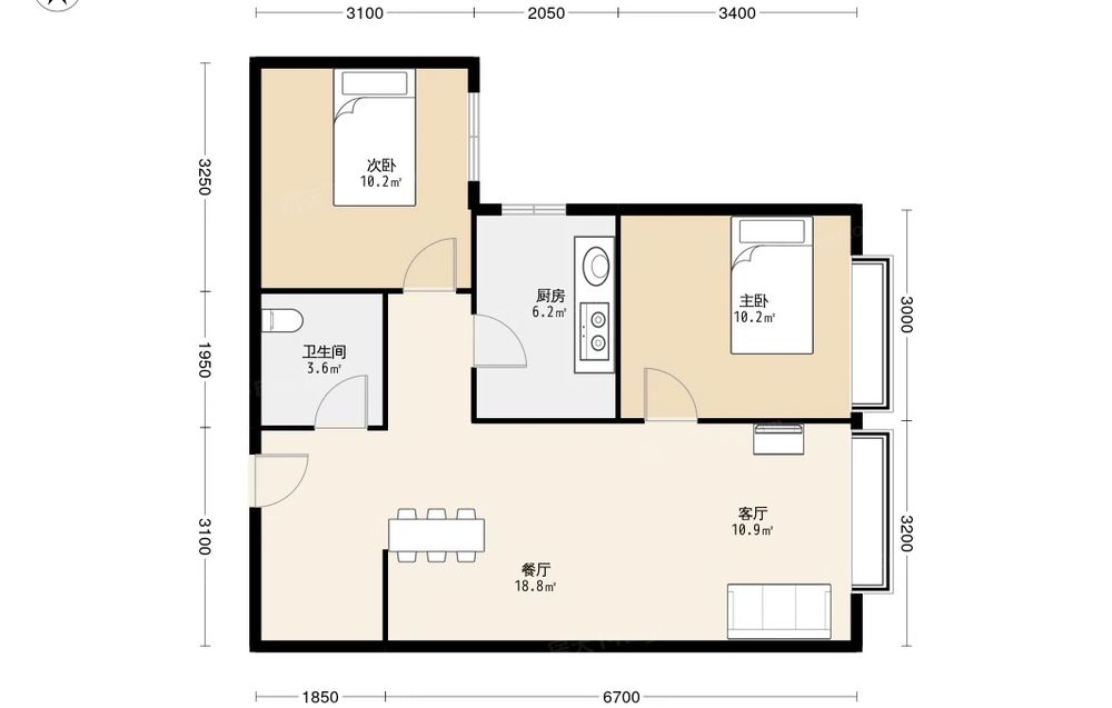 房屋结构 2室 1厅 1卫