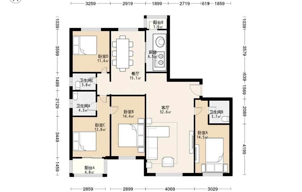 房屋结构 4室 2厅 3卫