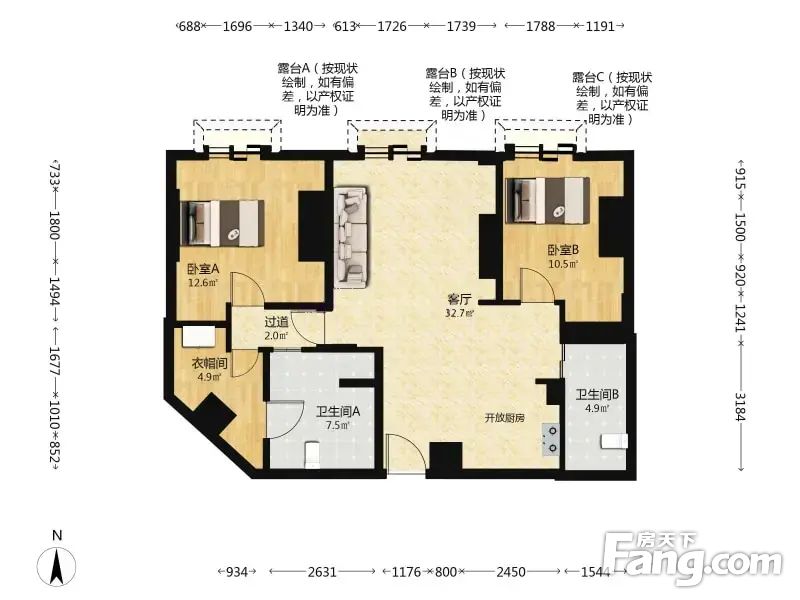 房屋结构 2室 1厅 2卫