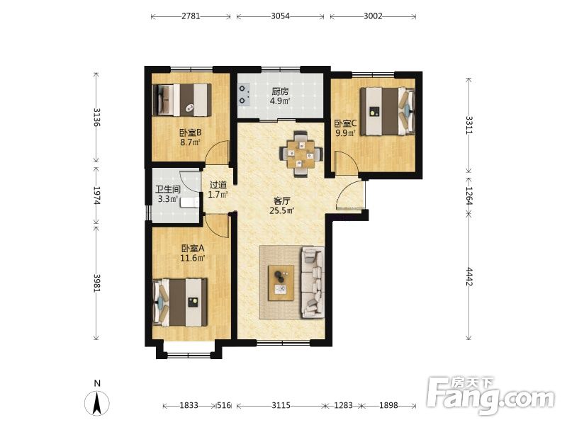 3室2厅1卫