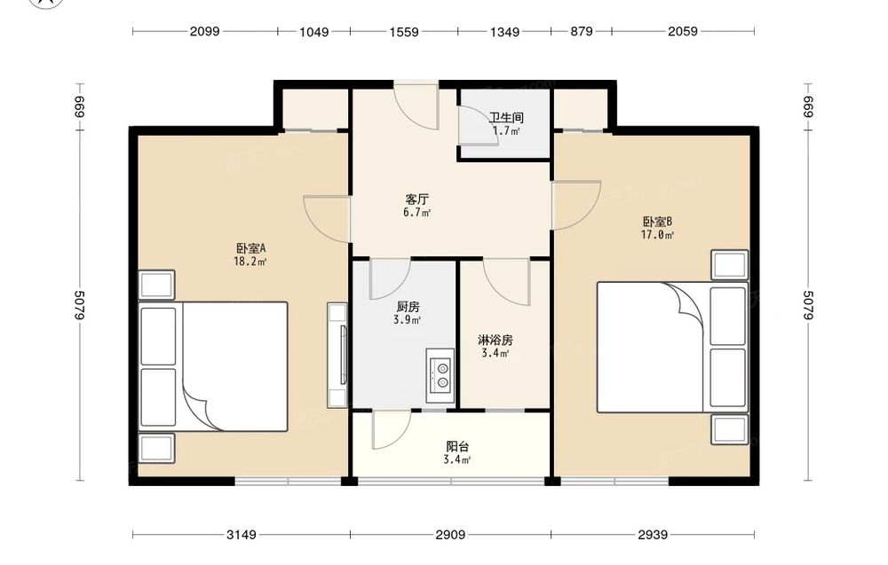 房屋结构 2室 1厅 2卫