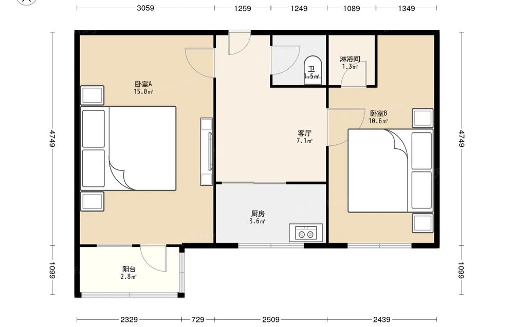2室1厅1卫