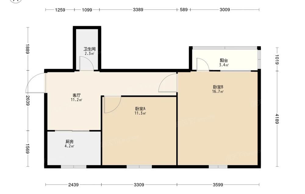 八角中里 2室1厅 南