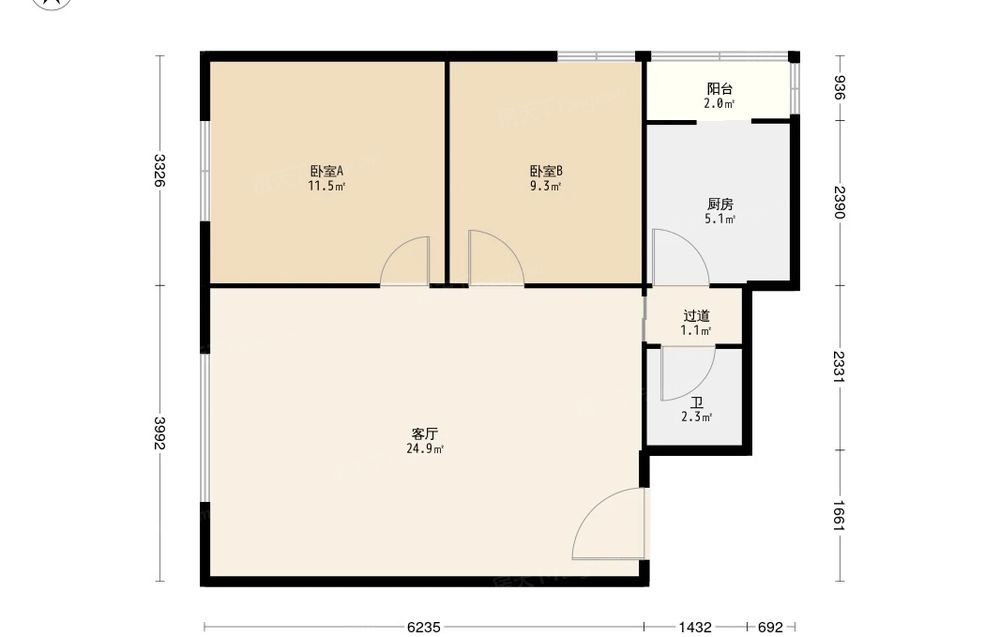 房屋结构 2室 1厅 1卫