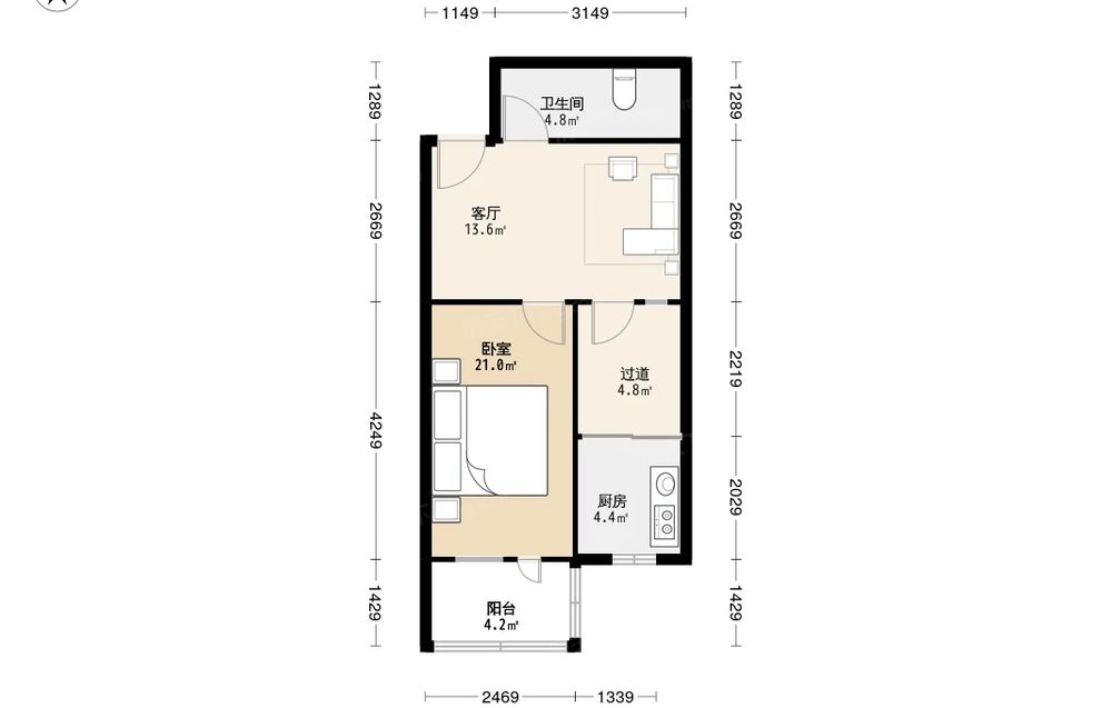 房屋结构 1室 1厅 1卫