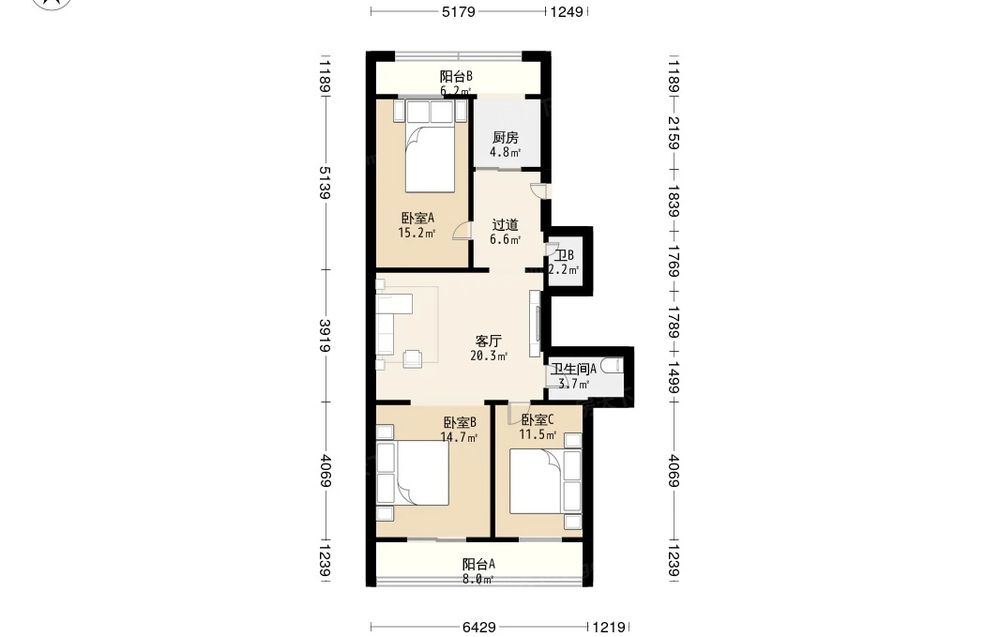 双兴南区 3室2厅 南 北