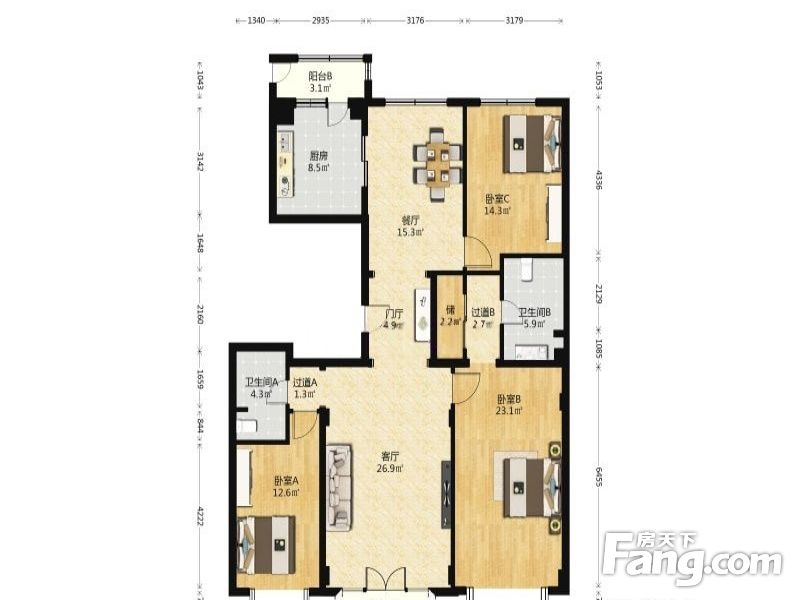 房屋拥有相对宽松的尺寸,布局通透,动静分离,设计豪华